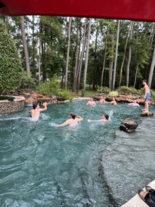 Below to the left is Coach Wolforth with our Summer 2024 interns. They did a fantastic job! The two other pictures below (center & right) are from our Legacy pizza/pool party. These young men came early all summer for a leadership training and then helped prepare the facilities and guide new athletes in the training. They certainly deserved some R&R.