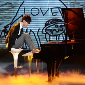 What about this young man, Liu Wei? As you can see, he plays the piano with his feet.